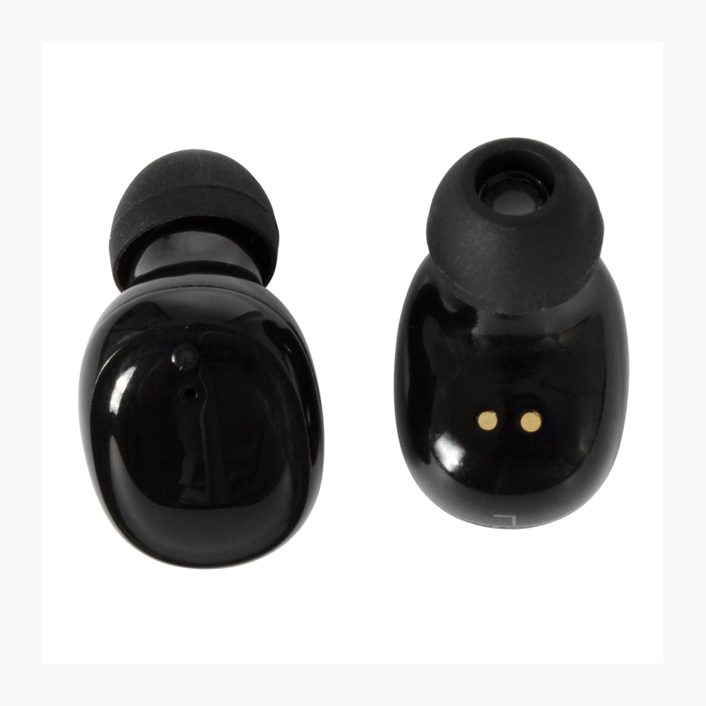 Audífonos Auriculares inalámbricos negros de Alta Fidelidad modelo «Echo». Cada auricular cuenta con un botón touch que permite subir y bajar el volumen, contestar y finalizar llamadas, reproducir y pausar música. Tienen tecnología Bluetooth 5.0, una duración de batería de aproximadamente 4 horas y un estuche de carga de 200 mAh, el cual se carga a través de un cable USB – Type C. Tiempo de Carga: 2 horas. Diámetro del Mando: 8MM, Sensibilidad: 93+-3dB, Impedancia: 32 Omega, Frecuencia: 20Hz-20KHz, Voltage de la Batería: 3.7V +- 0.5V, Distancia: 10m. Máxima Potencia: 5mW. Presentación en caja de regalo impresa a todo color.