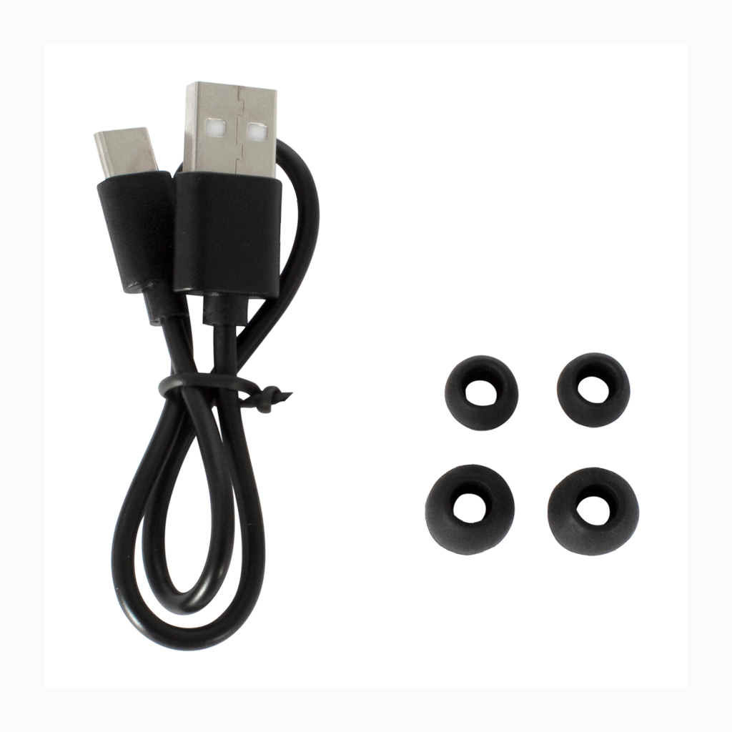 • Accesorios: Estuche de Carga de Batería, Auriculares TWS inalámbricos, Cable de Carga USB, Almohadillas tamaños S y M, Manual de Instrucciones en Inglés y Español.
