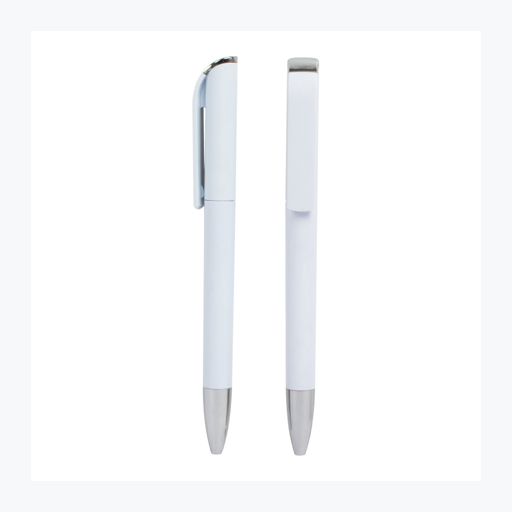 Bolígrafo blanco «Angel», con clip ancho plano, especial para imprimir sobre él. Escritura azul.