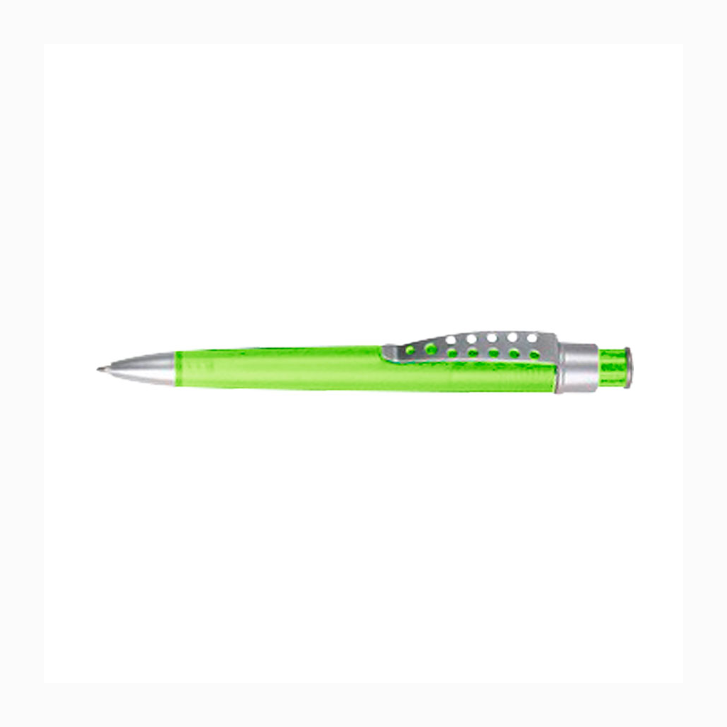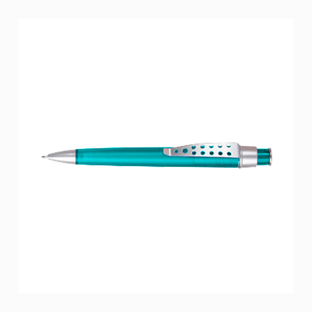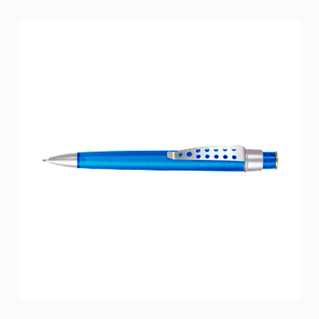 Bolígrafo plástico color frozen modelo «Evolution» con clip metálico con orificios. Escritura azul.