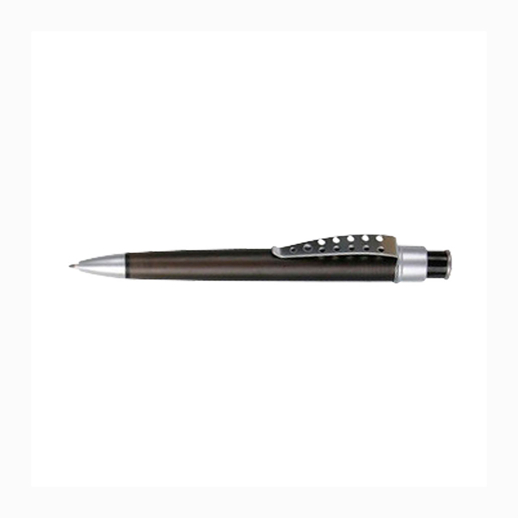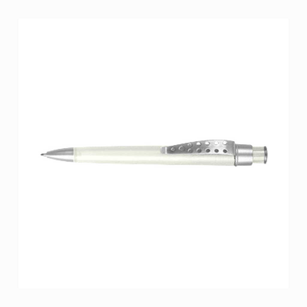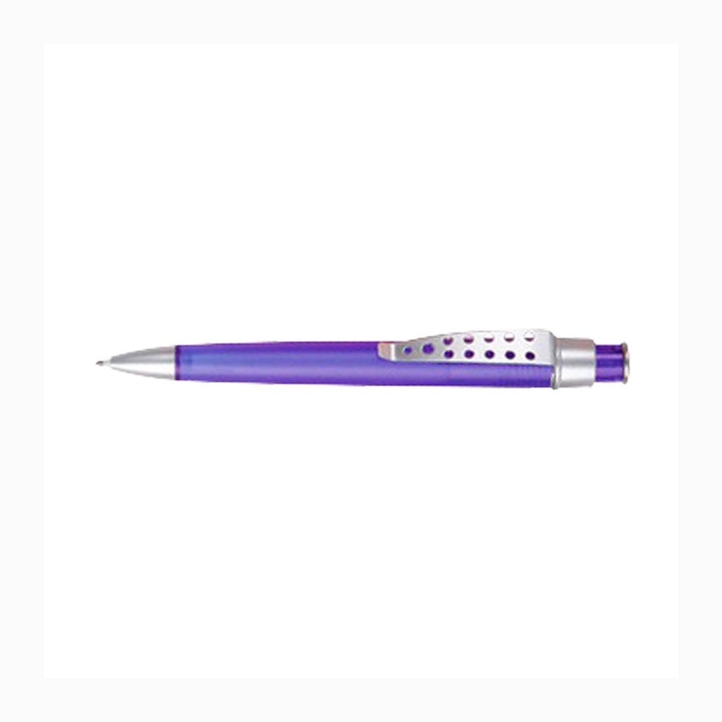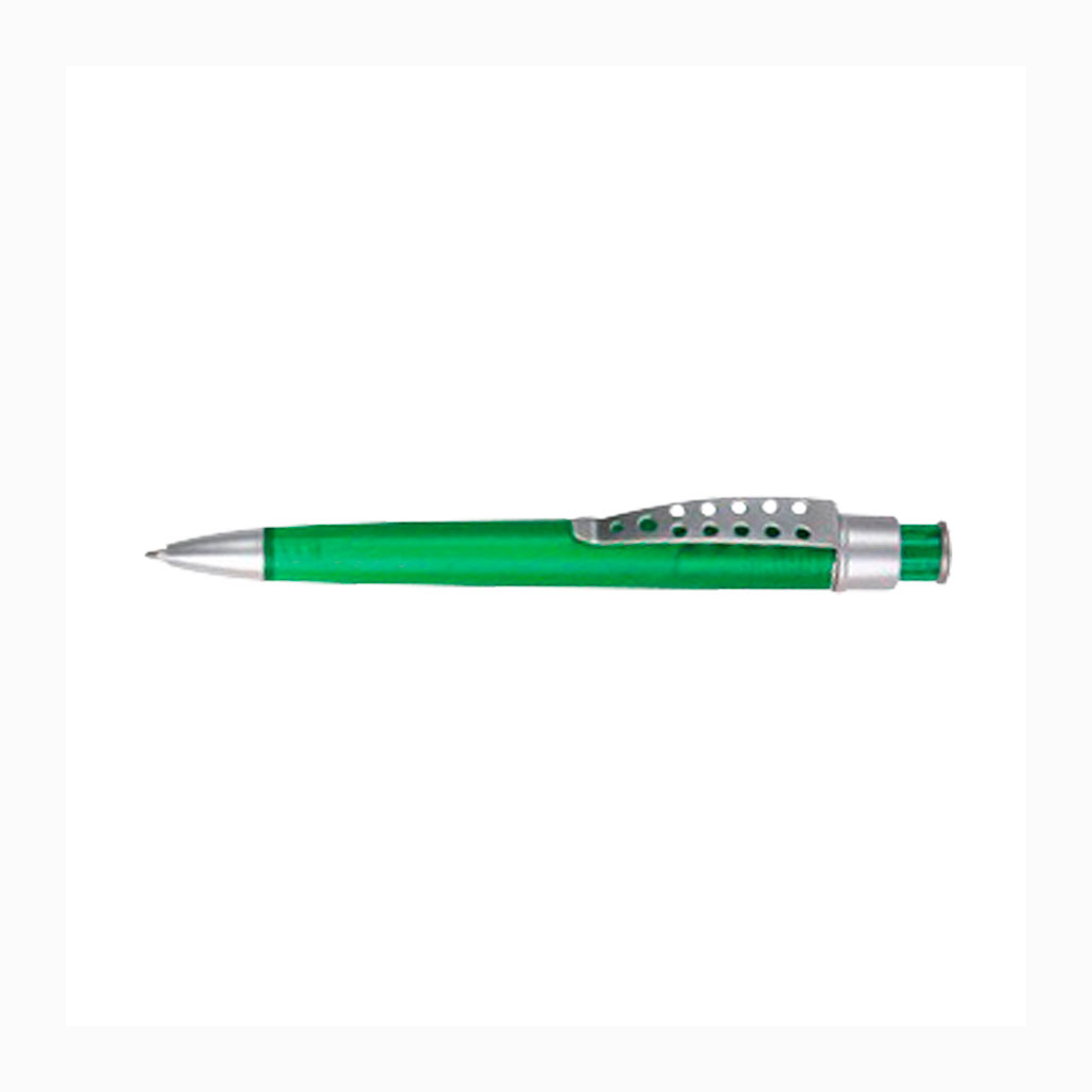 Bolígrafo plástico color frozen modelo «Evolution» con clip metálico con orificios. Escritura azul.