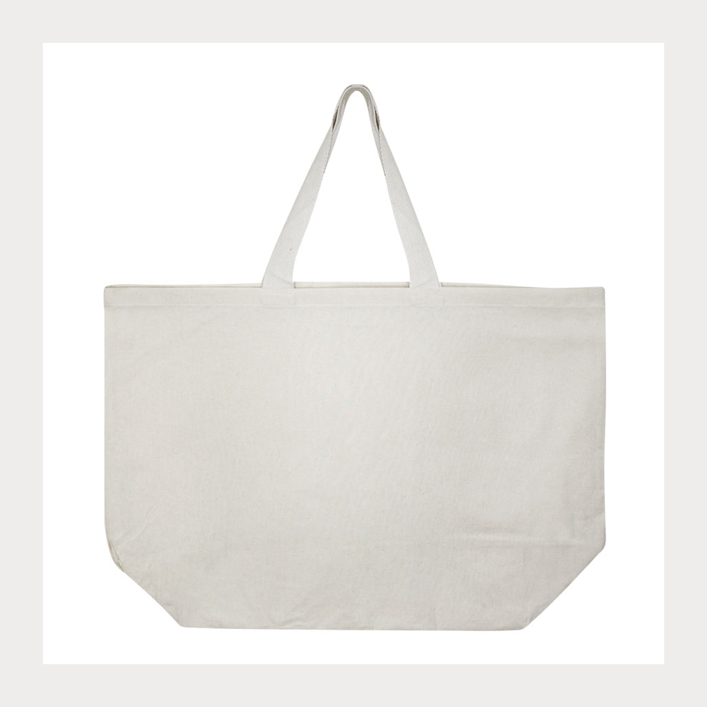 Bolsa grande 100% Algodón natural de 150g/m2, modelo «Burma». Manillas cintas de Algodón natural de 50 x 4 cm. aprox. c/u.