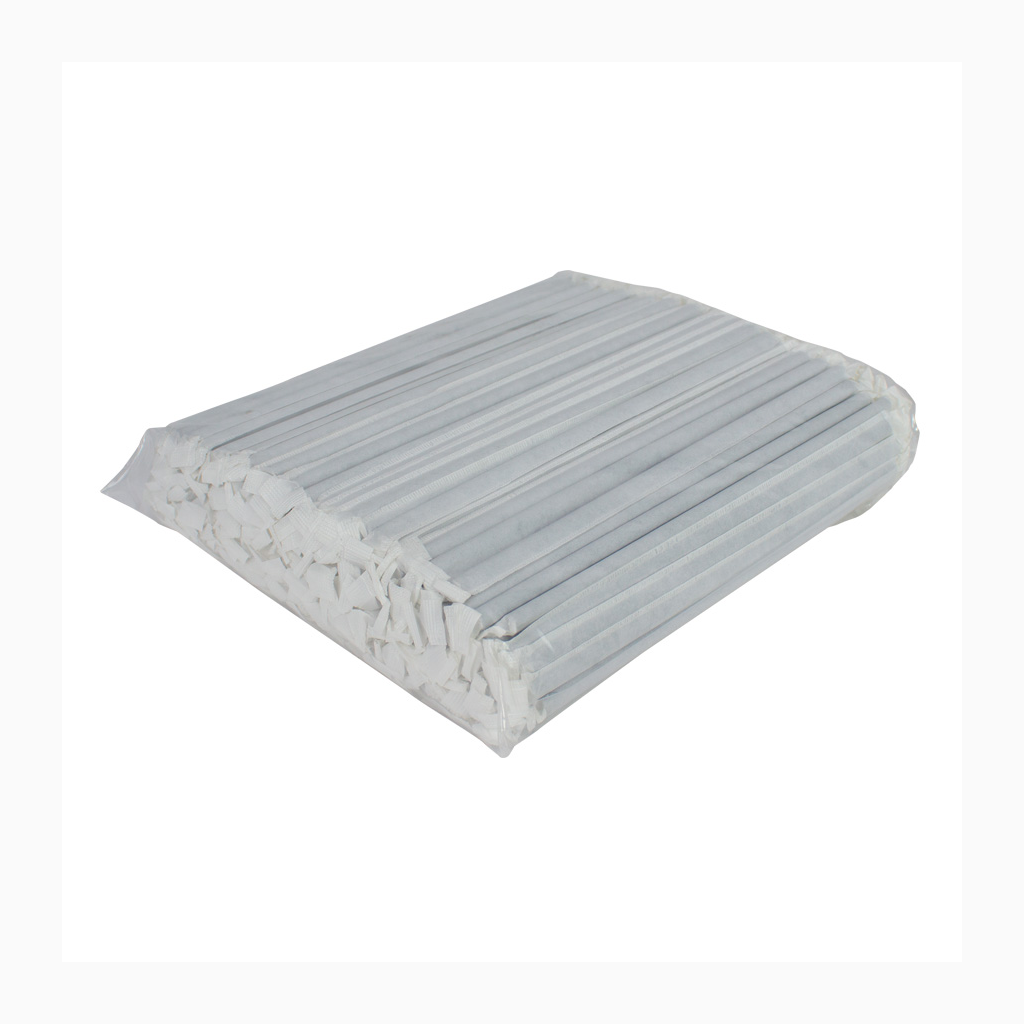 Bolsa con 200 Bombillas o Pajitas de Cartón de 19.6 cm. de largo x 0.6 cm. de diámetro c/bombilla. Cada bombilla sellada en forma individual, dentro de una bolsita de papel blanco.