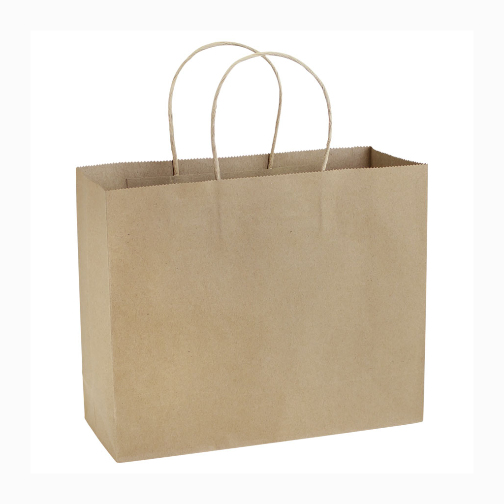 Bolsa de Papel kraft 100% reciclable y reutilizable. Fabricada en resistente material natural de 120g/m2. Contiene asas de papel prensado al tono.