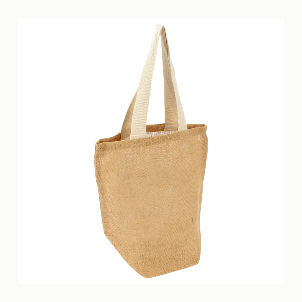 Bolsa de Yute modelo «Shangri-La», con recubrimiento laminado interior. Fuelle de yute. Manillas de cordón acolchado de yute de 40 x 1.5 cm. aprox. c/u.