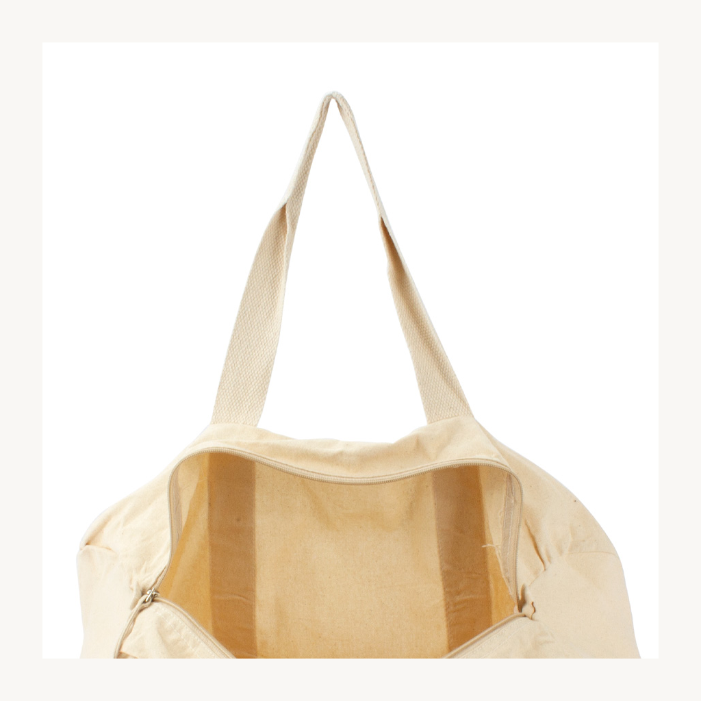 Bolso deportivo tubular de Canvas Algodón natural de 8 onzas, modelo «New Delhi». Manillas cintas de Algodón natural de 60 x 4 cm. aprox. c/u.