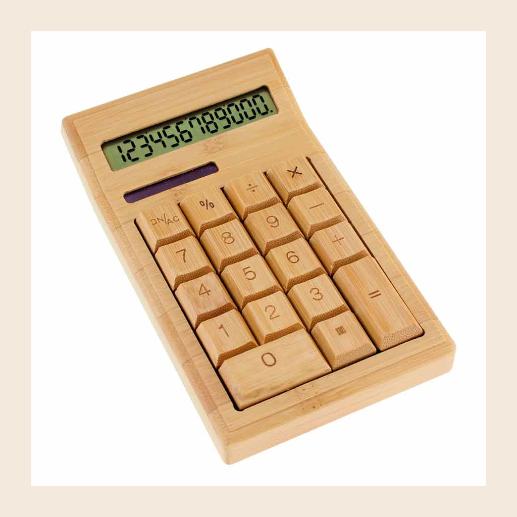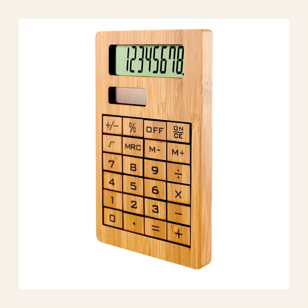 Calculadora 100% de madera de Bamboo. Visor solar 8 dígitos.