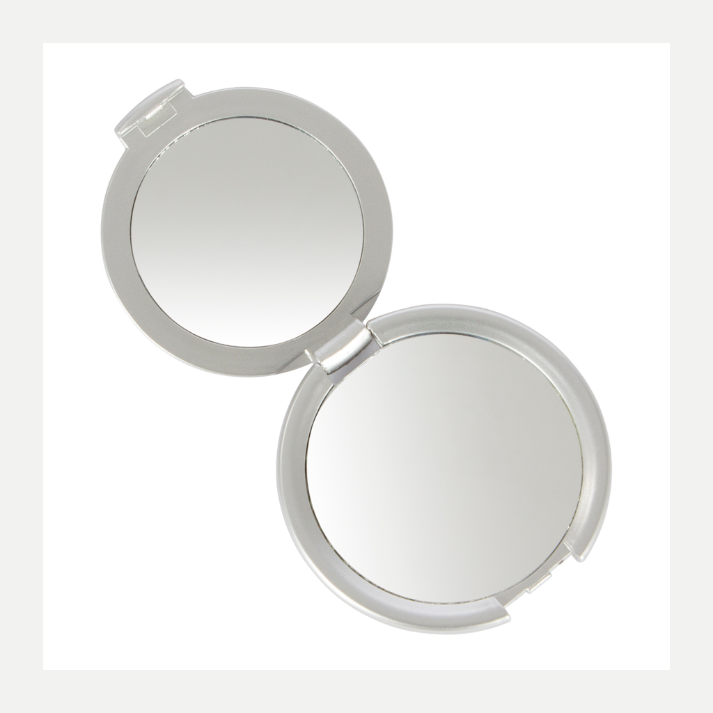 Espejo plástico plateado redondo doble, contiene 1 espejo normal + 1 espejo con aumento.