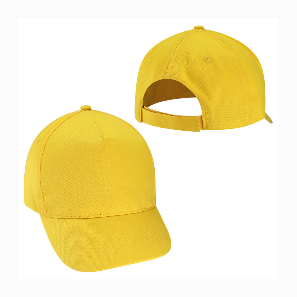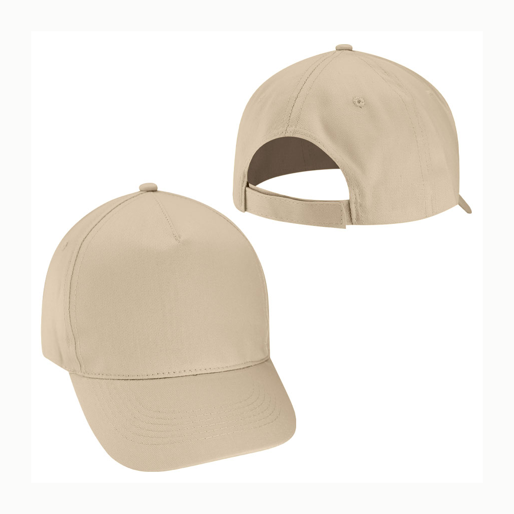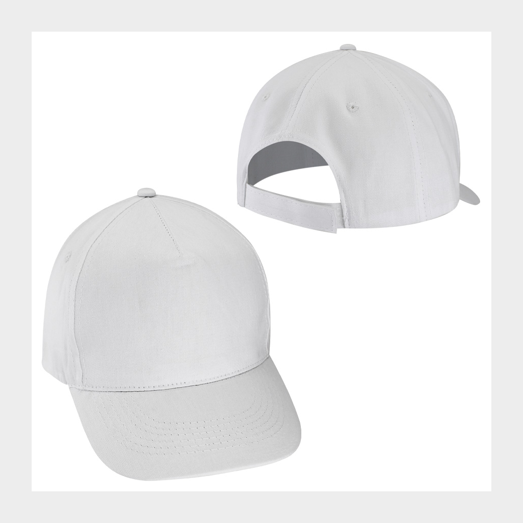 Jockey 5 paneles, 100% Algodón. Panel frontal liso, ideal para impresión. Cierre posterior velcro.