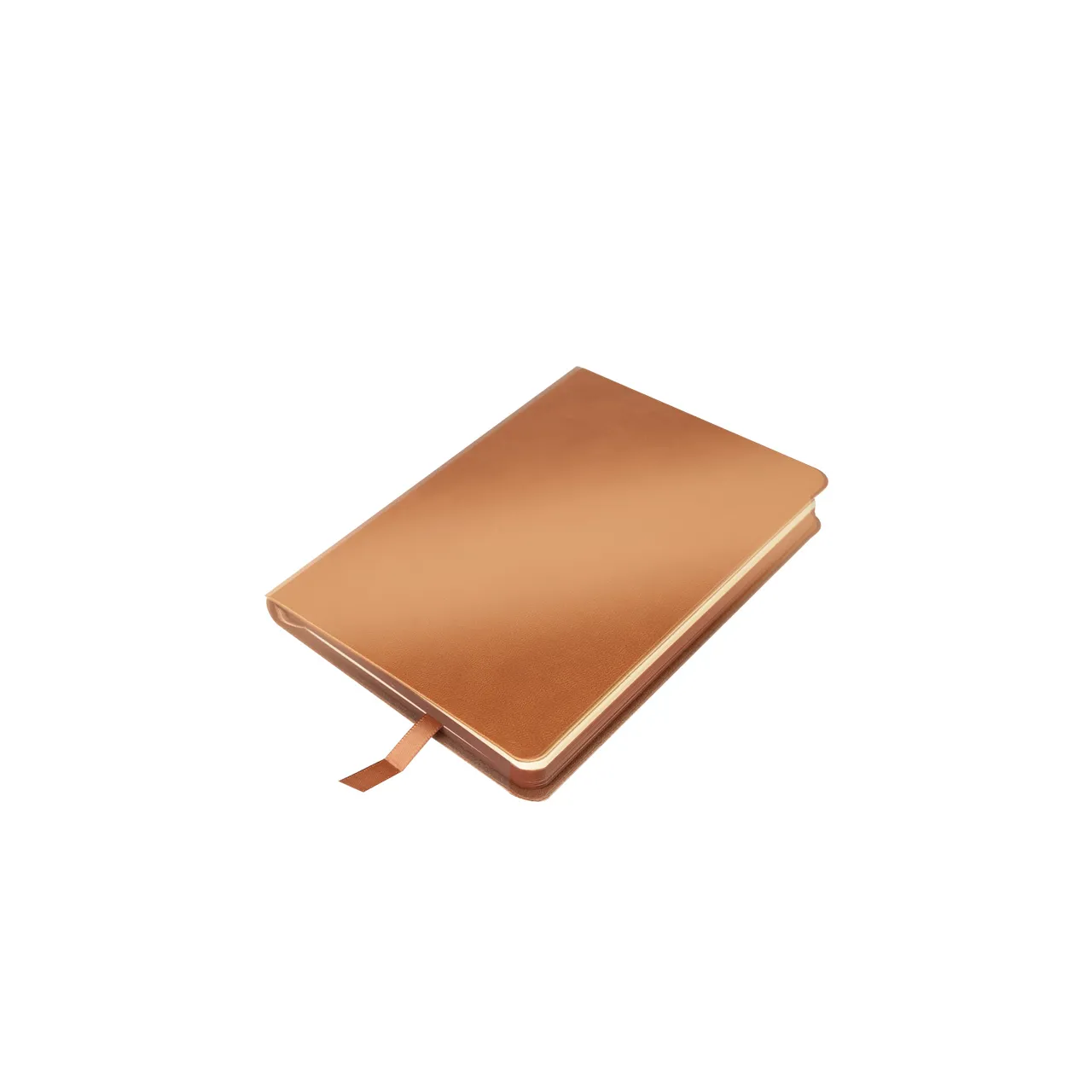 Libreta tamaño A6, con cubierta de PU eco-cuero de 2mm de espesor y lomo pintado de color al tono. Interior 80 hojas lineadas amarillas de 80gsm. Incluye banda separador de hojas al tono. Presentación individual en bolsa de polipropileno.