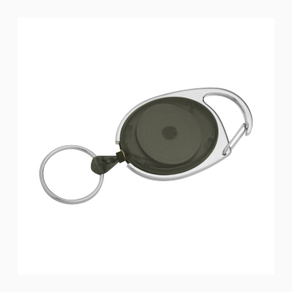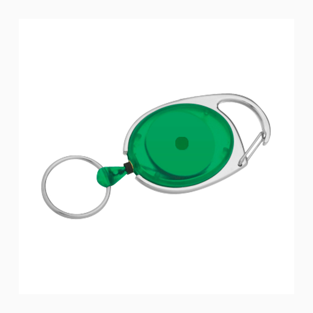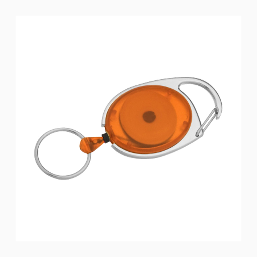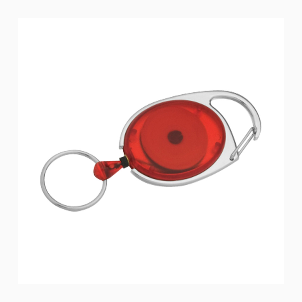 Llavero con Mosquetón y extensor retráctil, en color traslúcido.