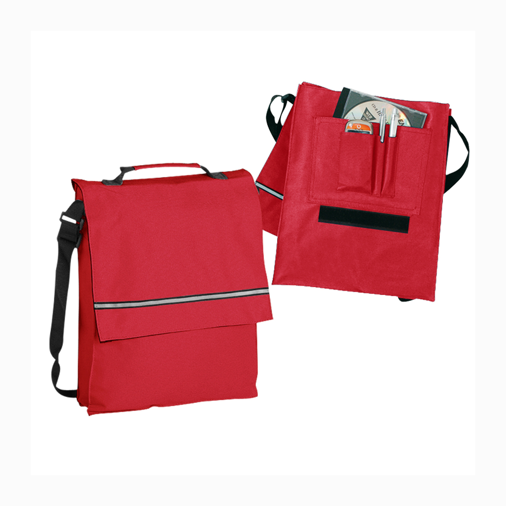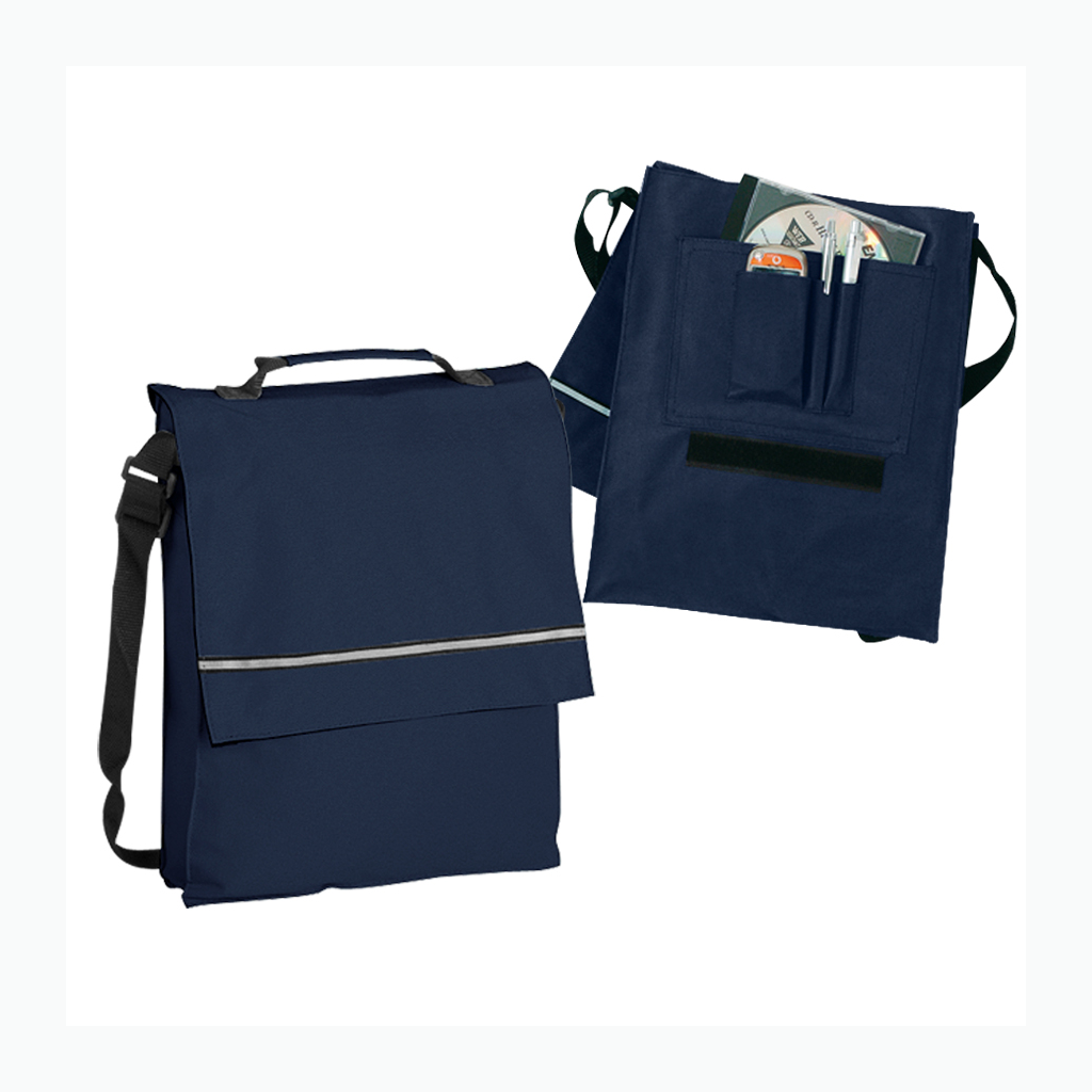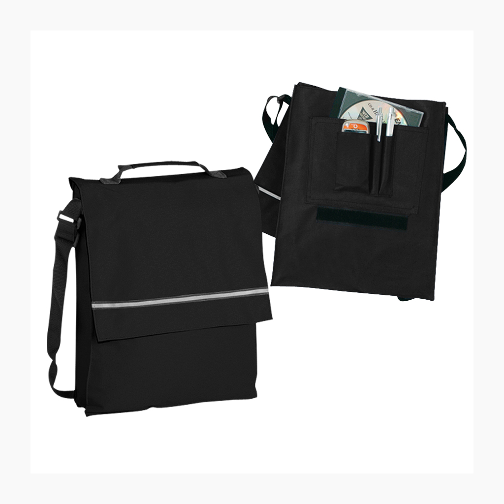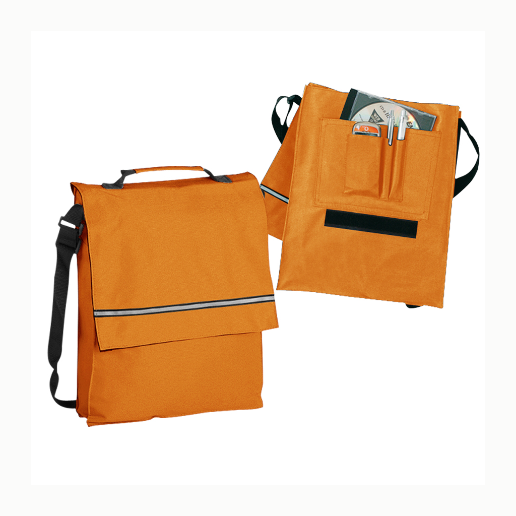 Maletín Portadocumentos de tela raquelada Polyester 600D modelo «Milan», con solapa y bolsillo interior multi-accesorios. Incluye banda reflectante en la solapa.