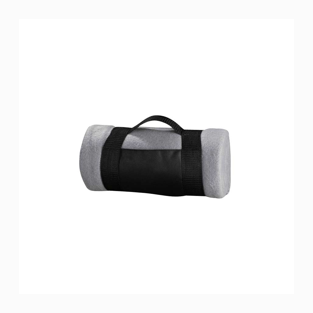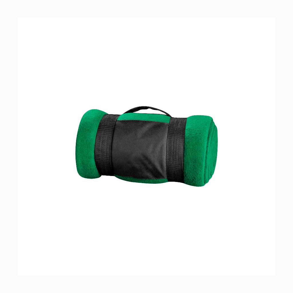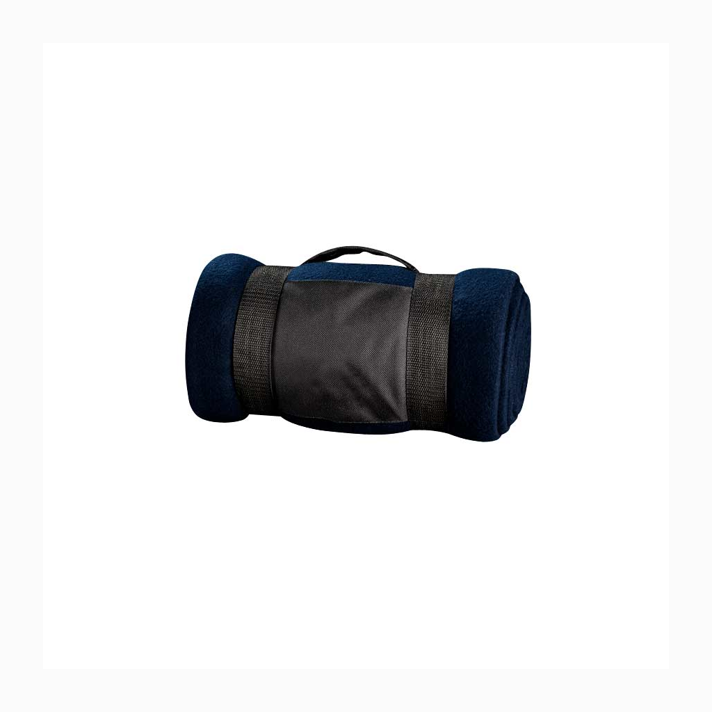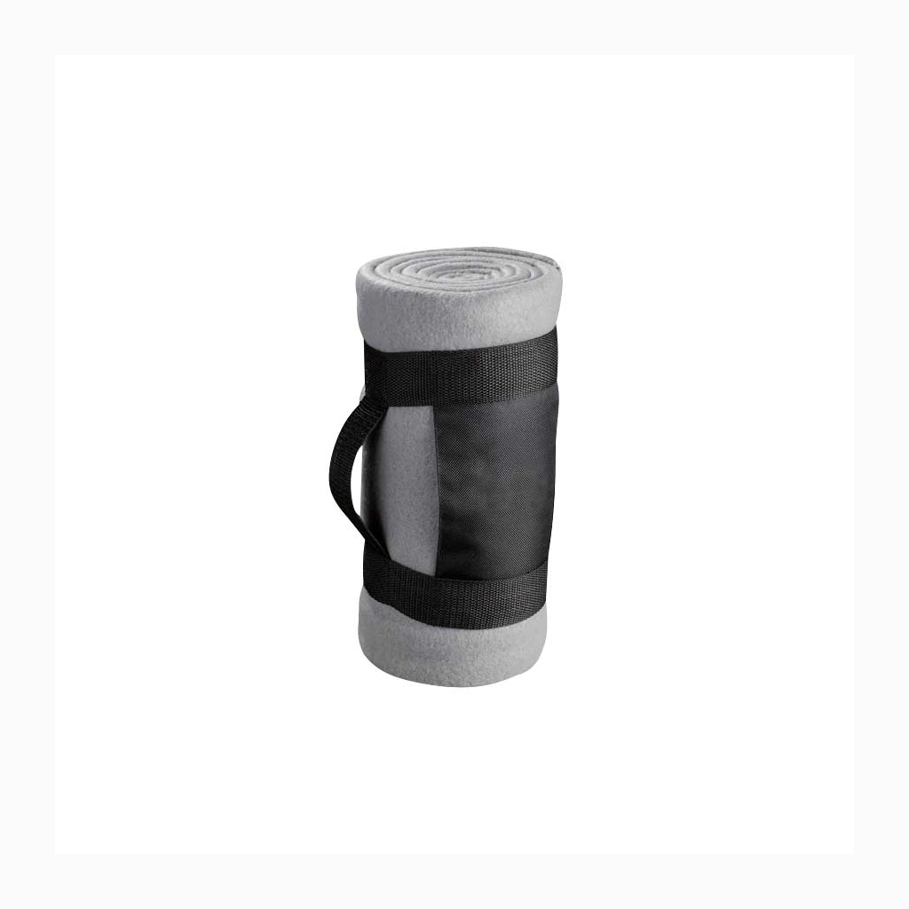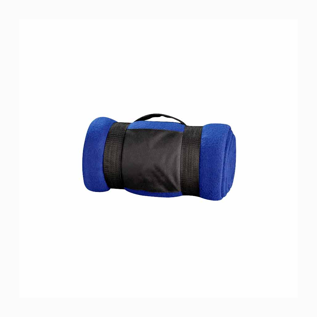 Manta de Polar Anti-peeling de 250 g/m2 con Costuras en todo el rededor, incluye bolsito de tela negra de transporte, con espacio para logo.