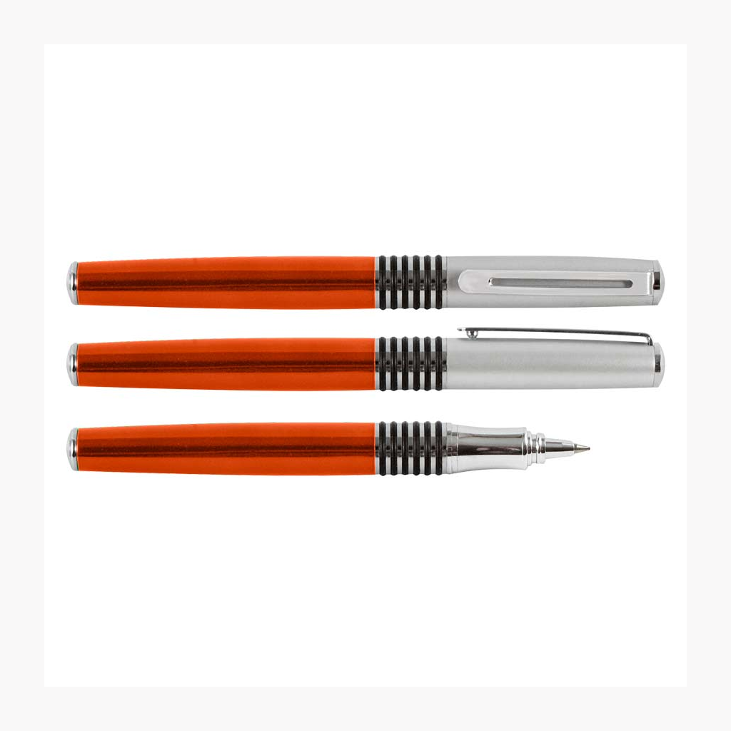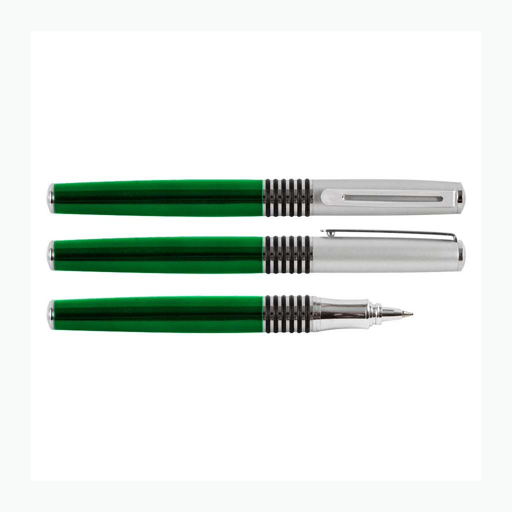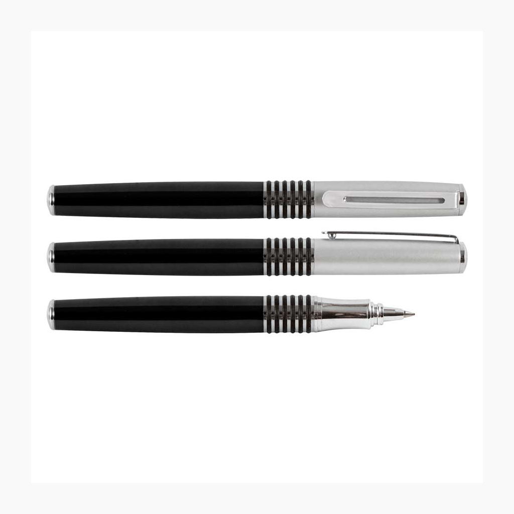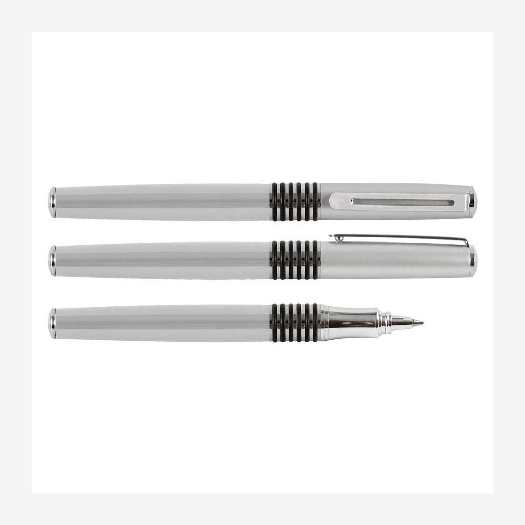 Roller Ball Metálico modelo «Manager», cuerpo de color metalizado y tapa plateada satin. Tinta negra.