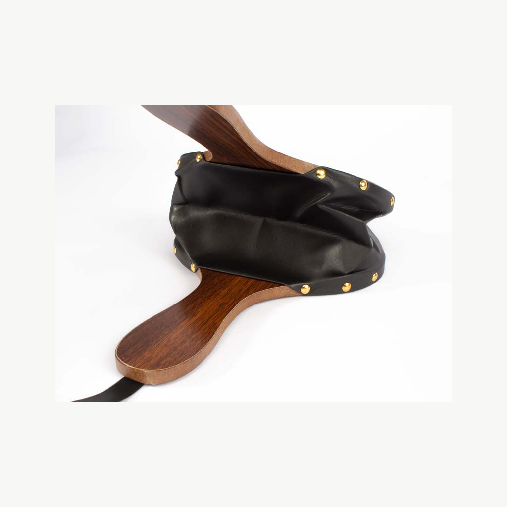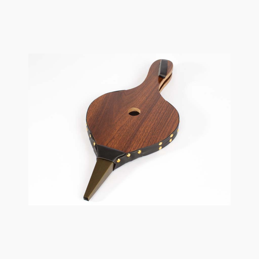 Soplador grande de aire tipo Acordeón, para chimeneas y parrillas. Superficie MDF, reforzado con cuero y tachas. Toma de aire posterior. Amplia superficie para logo.